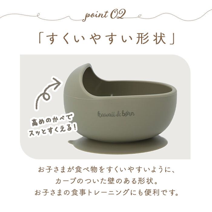 ・さらにお子さまが食べ物をすくいやすい形状になっており、安心してお子さまのお食事トレーニングができちゃう◎