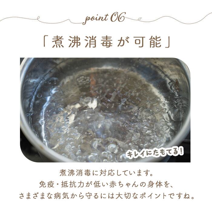 ・煮沸消毒・食洗機・電子レンジの使用OK!お手入れがラクラク、いつでも清潔に保てるのが嬉しい。