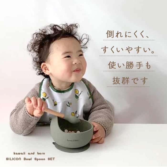 ・離乳食や幼児食、お子さまのおやつを食べるときに便利♪kawaiiandbornのシリコンボウルandスプーンセット。