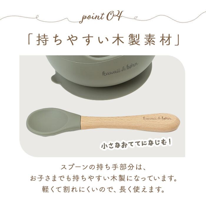 ・スプーンの持ち手はお子さまでも持ちやすい木製。
