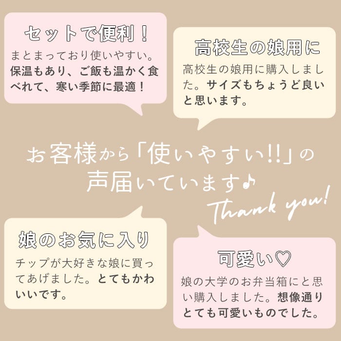 ※保温効力とは、室温20度±2度の環境において、保温ジャーに熱湯を容器分入れ縦置きした状態で、湯温が±1度になったとき、フタをしてランチバッグに収納し、6時間放置した場合におけるその湯の温度です。