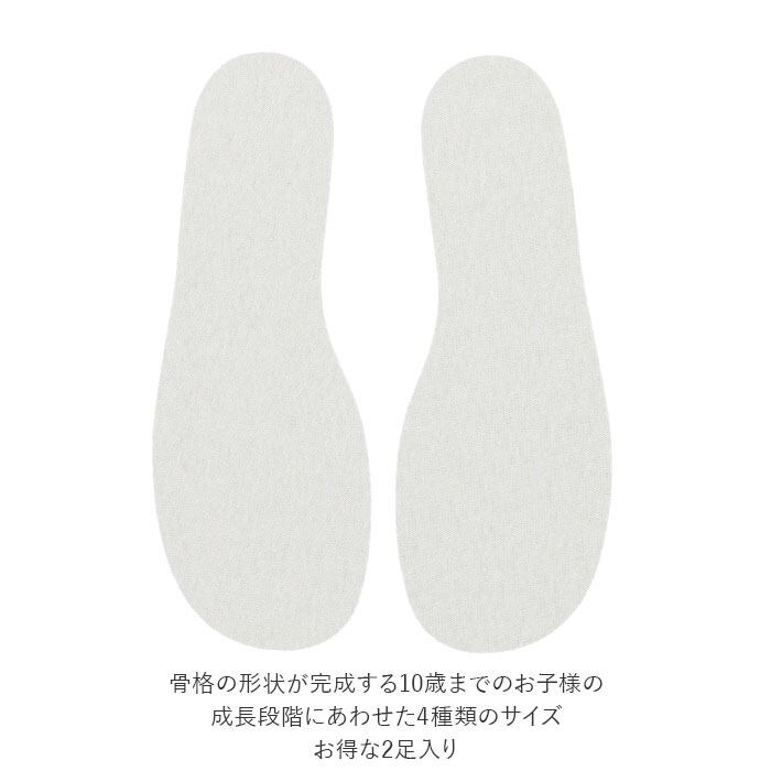 ・骨格の形状が完成する10歳までのお子様の成長段階にあわせ、4種類のサイズ。お得な2足入り。