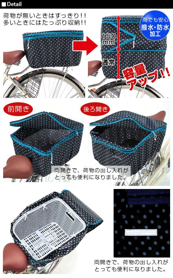 2段式後カゴカバーは、荷物が多いときに簡単に容量アップできて、たっぷり収納できます♪