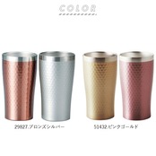 ・表面は高級感のある打ち出し加工仕上げ。ツヤのあるメタリック調で、飲み口がシルバー色に縁取られたスタイリッシュなデザイン。