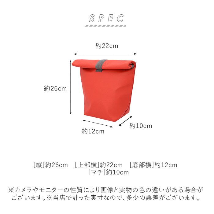 ・バッグの入れ口をくるっと巻いて閉じるカンタン仕様!コンパクトサイズで、おにぎりを入れたり、フルーツやちょっとしたおかずを入れたミニ容器を持ち運ぶのに便利。