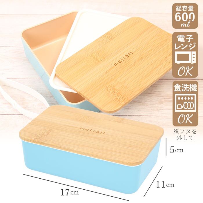 ・竹を使ったナチュラルな素材感とカラフルな色使いが可愛い「matratt(モースレ)」から「matratt 長角一段ランチ 弁当箱 600ml」が登場。
