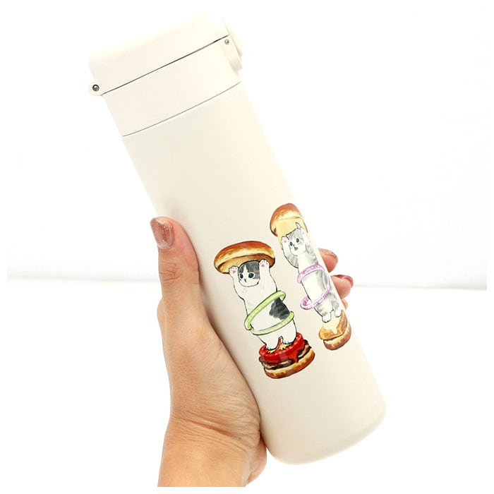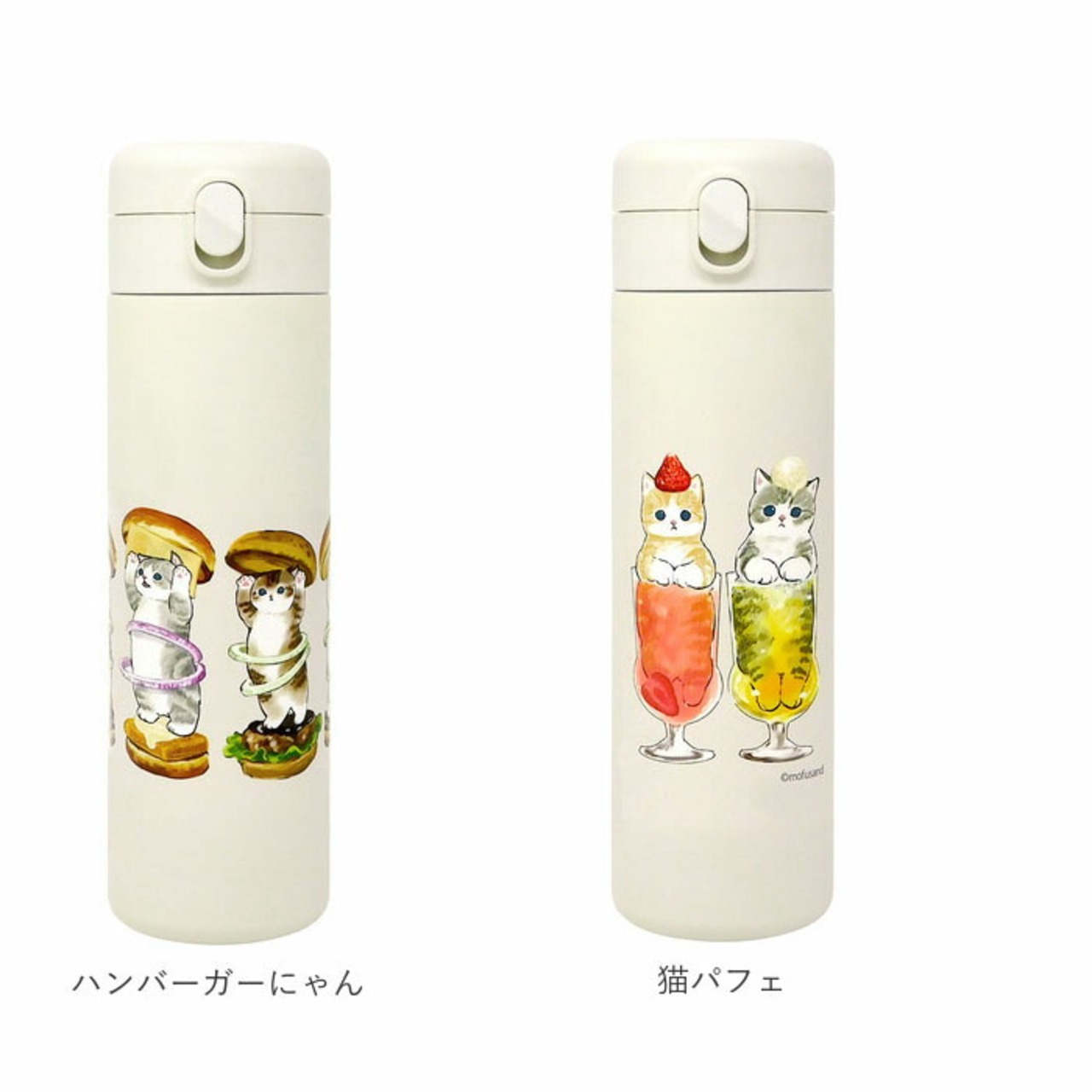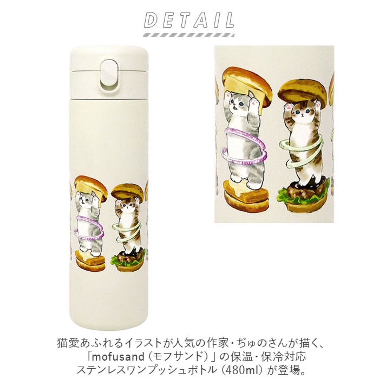 ・猫愛あふれるイラストが人気の作家・ぢゅのさんが描く、「mofusand(モフサンド)」の保温・保冷対応ステンレスワンプッシュボトル(480ml)が登場。