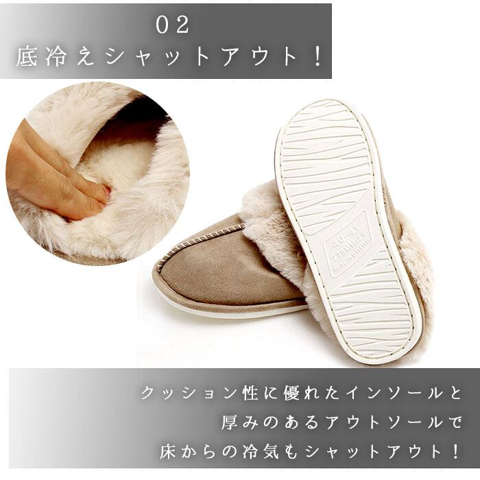 ・足裏はもちろん、つま先から足の甲まで暖かなファーがしっかりと包み込んでくれる嬉しいデザイン。