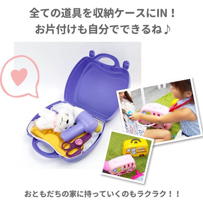 ・ハンドバッグ型の収納ケース入りだから、お道具をきちんと自分でおかたづけできちゃう♪