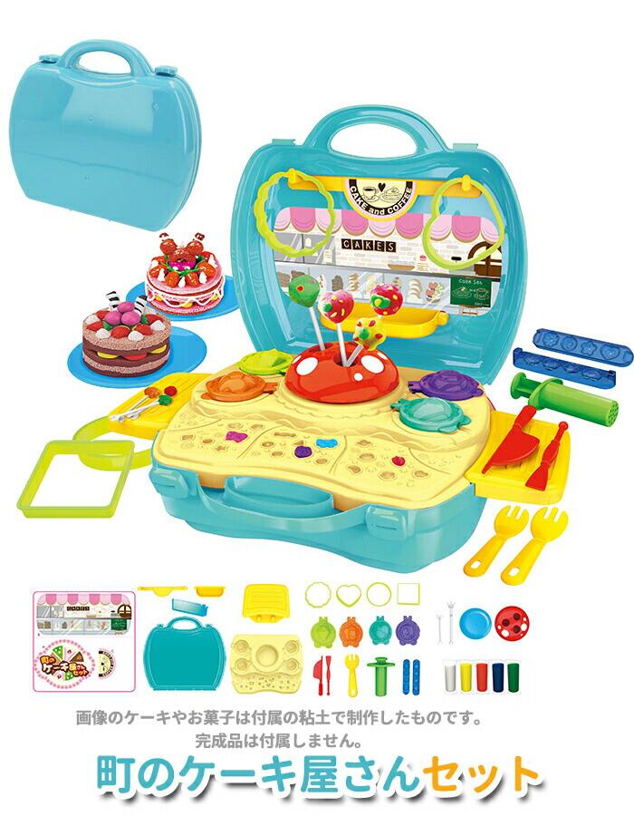 ・いろいろ作れる粘土がセットの「町のケーキ屋さんセット」と「映画館の売店屋さんセット」。