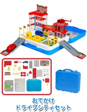 ・街を組み立てられる楽しい「おでかけドライブシティセット」。