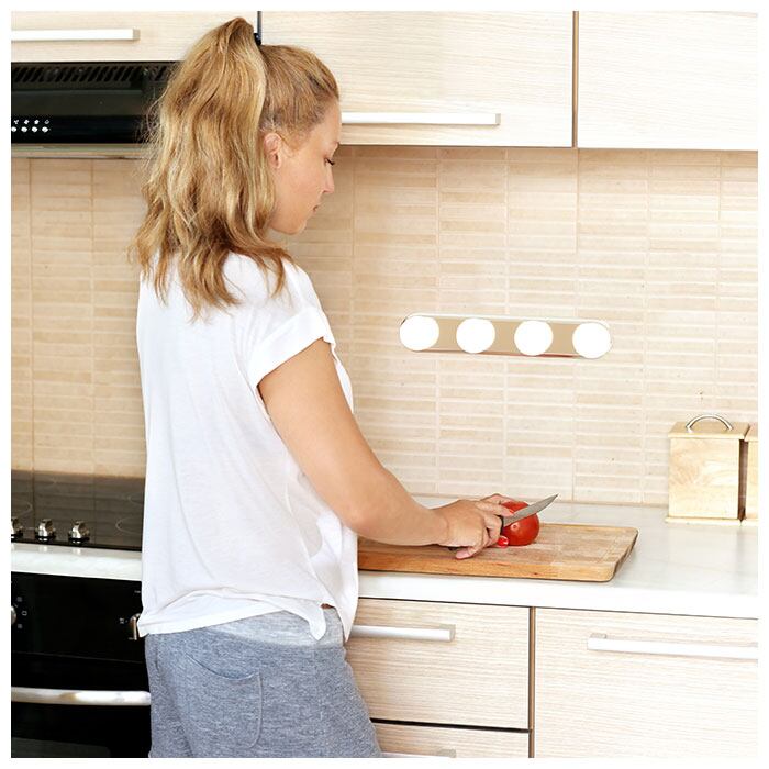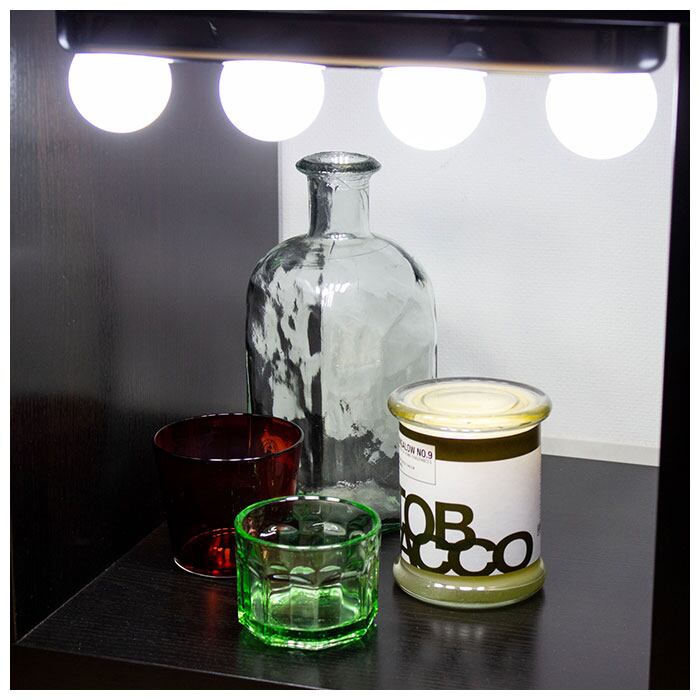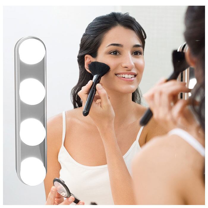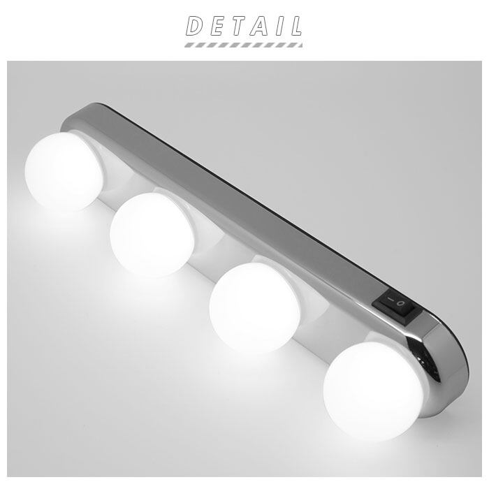 ・LEDライトを4つ搭載。鏡周りに設置すればお顔を明るく照らしてくれて、繊細なアイメイクもばっちりキマる♪