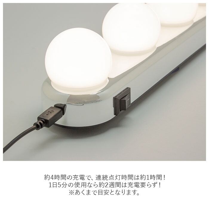 ・約4時間の充電で、連続点灯時間は約1時間!1日5分の使用なら約2週間は充電要らず!(※あくまで目安となります。)