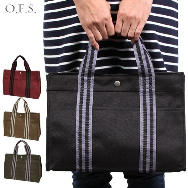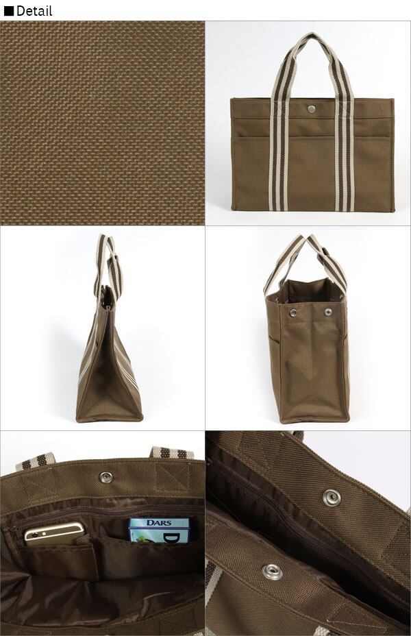 ラインベルトがアクセント♪A4サイズがすっぽり入る使いやすいトートバッグです。内部にはファスナーポケット・オープンポケット・携帯ポケットが付き、外側も6か所のポケット付きで、小物収納に便利です♪マチがあるので収納しやすく、しっかりした作りで大切な荷物を持ち運べます。シンプルなので、男女問わず幅広くお使いいただけます♪