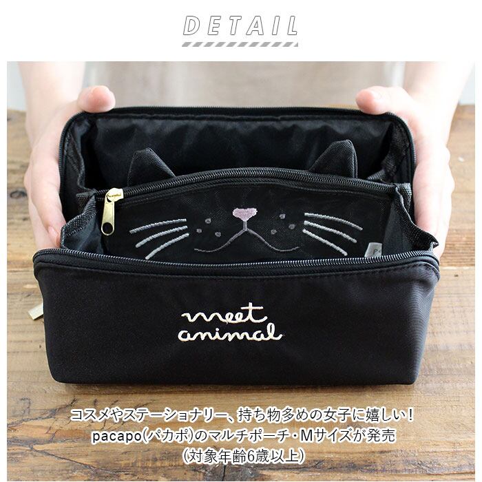 【廃盤】pacapo パカポ マルチポーチ 通販 アニマル 小さめ ポーチ 小物入れ 180度開く 仕切り シンプル かわいい おしゃれ ブランド 撥水加工 化粧 メイク 便利 プレゼント ギフト