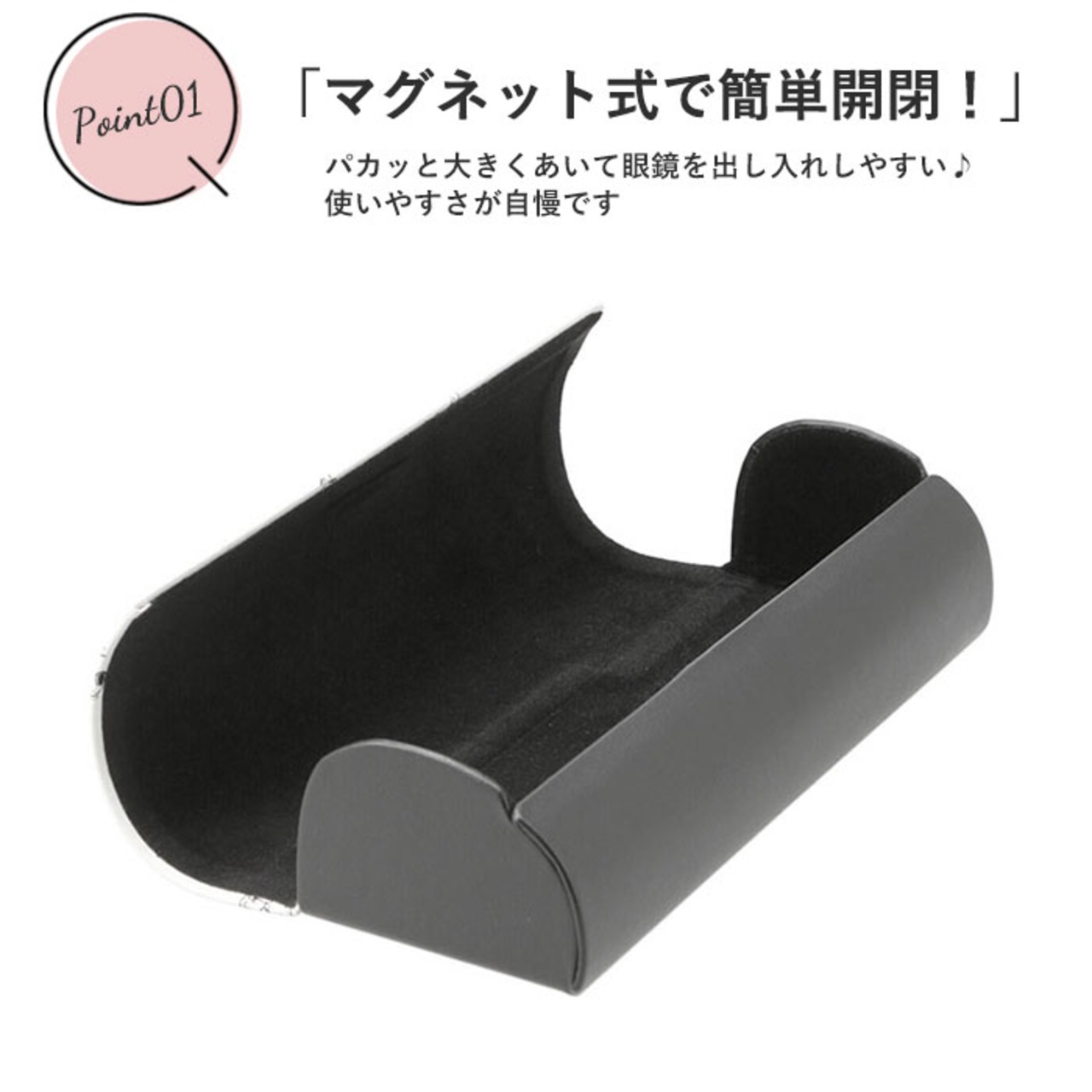 ※このメガネケースは、マグネット(磁石)を使用していますので、定期券や磁気カード、電化製品を近づけないで下さい。磁気が破損する恐れがあります。