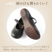 ・つま先はゆったりめのデザインで、指先が締め付けられない履きやすさ重視のつくり。ソール裏側にはしっかりと溝が刻まれているので、雨の日でも滑りにくい。