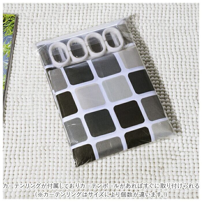 ・カーテンリングが付属しておりカーテンポールがあればすぐに取り付けられる。さらにカーテンは軽く取り付けやすいのも嬉しいポイント。(※カーテンリングはサイズにより個数が違います。)