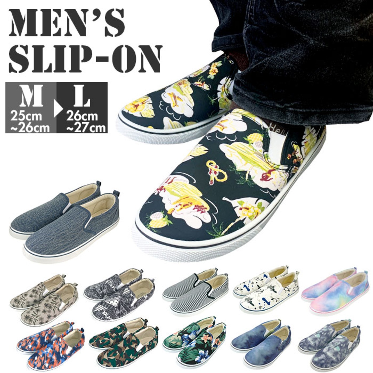 スリッポン メンズ スニーカー 通販 シューズ カジュアル メンズシューズ おしゃれ シンプル かわいい 柄 模様 タイダイ リゾート アロハ デニムブルー ヒッコリーブラック ペイント M 25 26 L 26 27