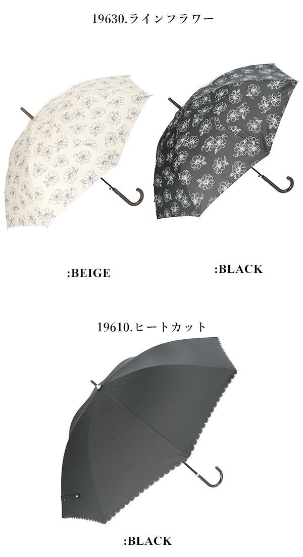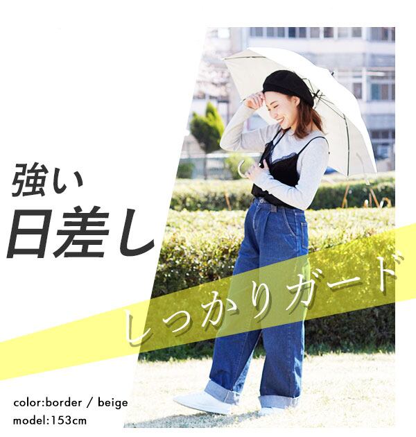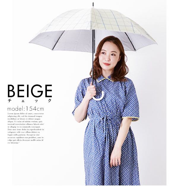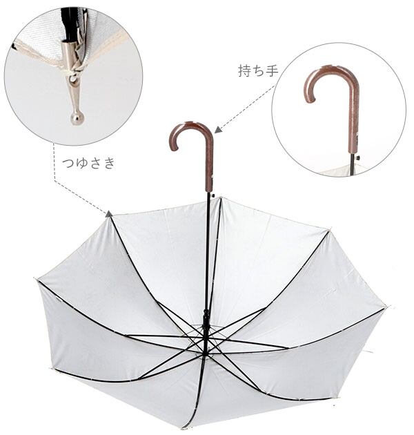 傘生地の内側がシルバーコーティングされており、紫外線遮蔽率95%以上で、上品なデザインの晴雨兼用の長傘です。持ち手は女性らしい細いフォルムと革風素材でできています。