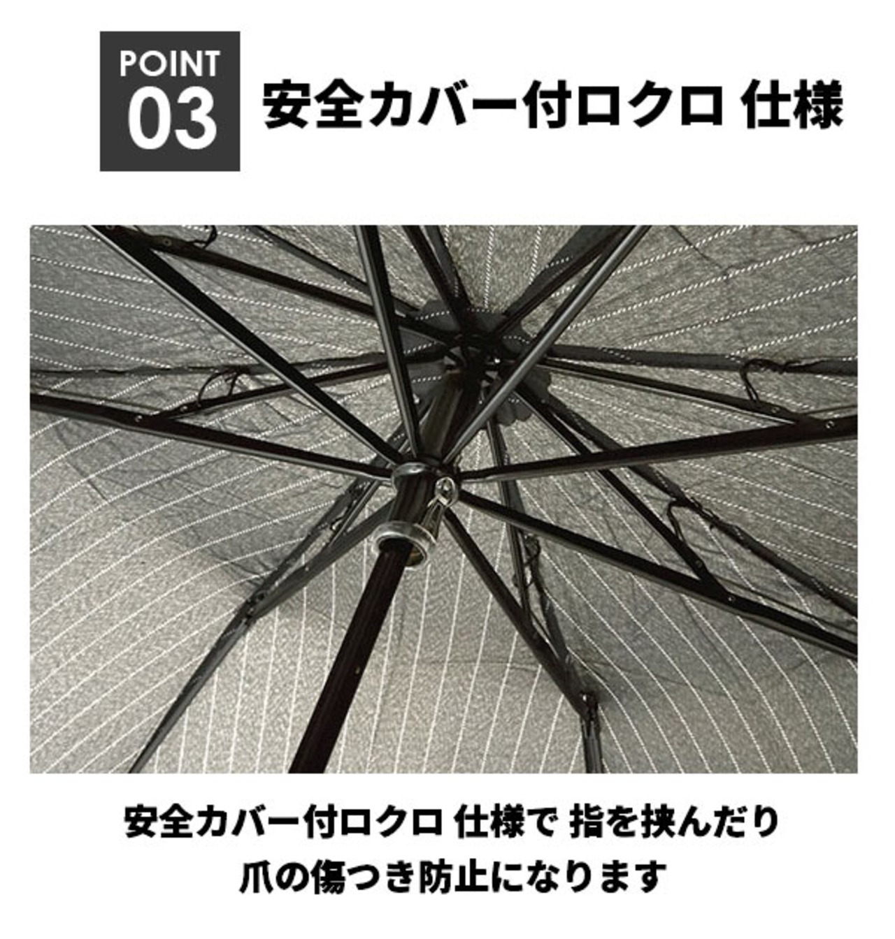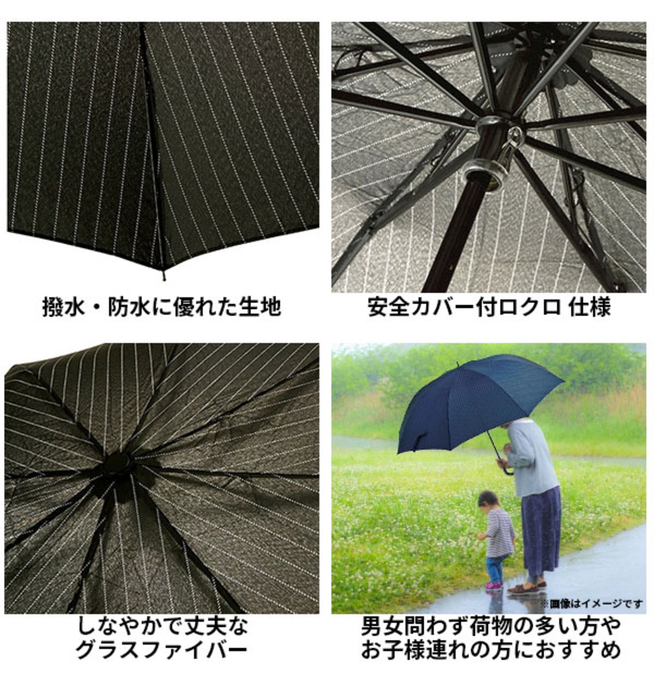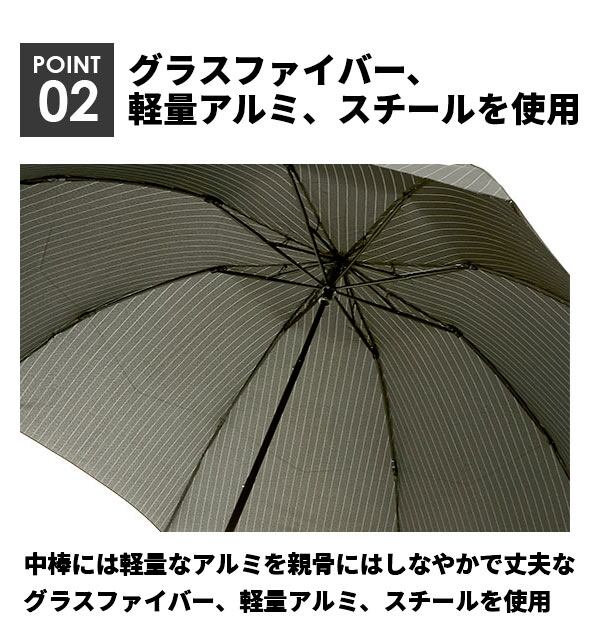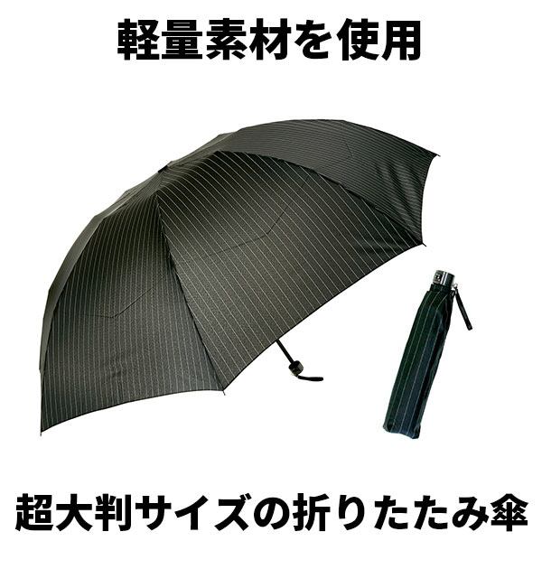 かなり大きめ70cmサイズの折り畳み傘。丈夫な8本骨です。折り畳み傘なのでバッグなどに入れておけば濡れにくく急な雨でも安心です。デザインはシンプルなストライプ。