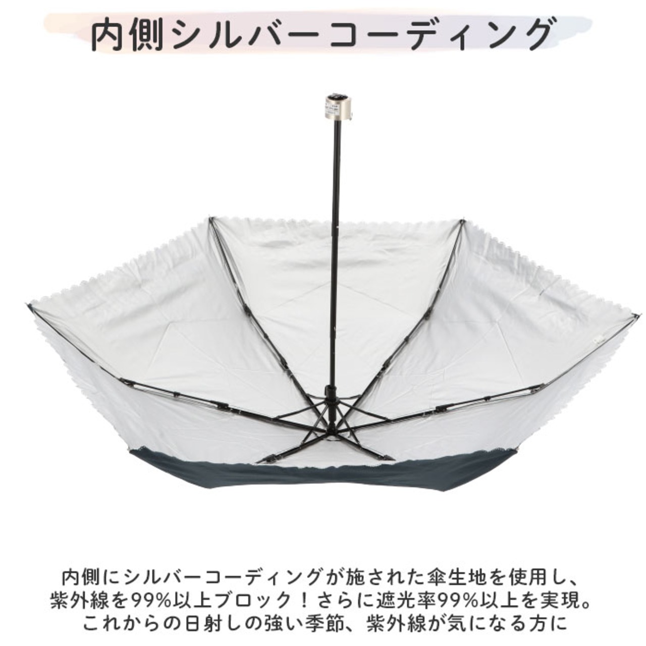 ・内側にシルバーコーディングが施された傘生地を使用し、紫外線を99%以上ブロック!さらに遮光率99%以上を実現。これからの日射しの強い季節、紫外線が気になる方に。