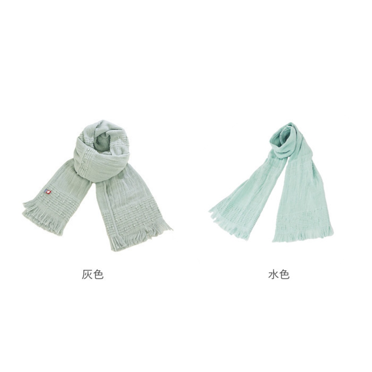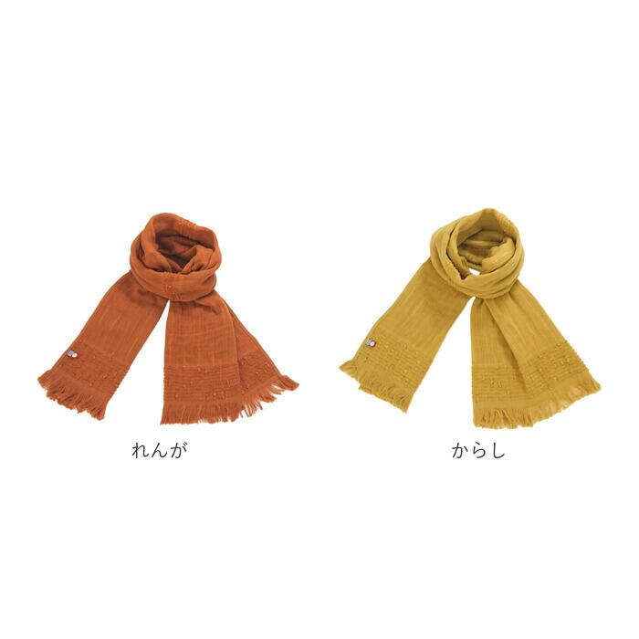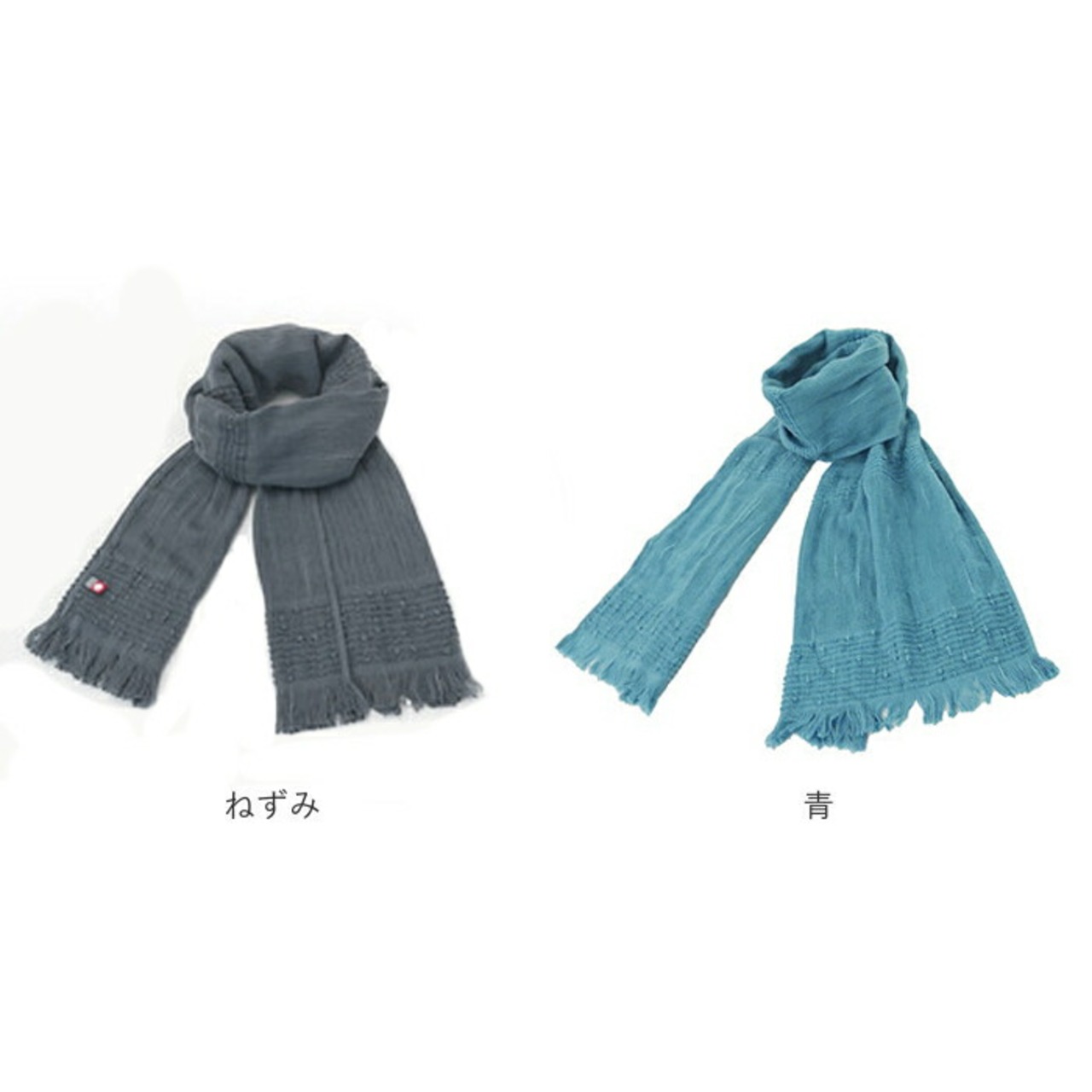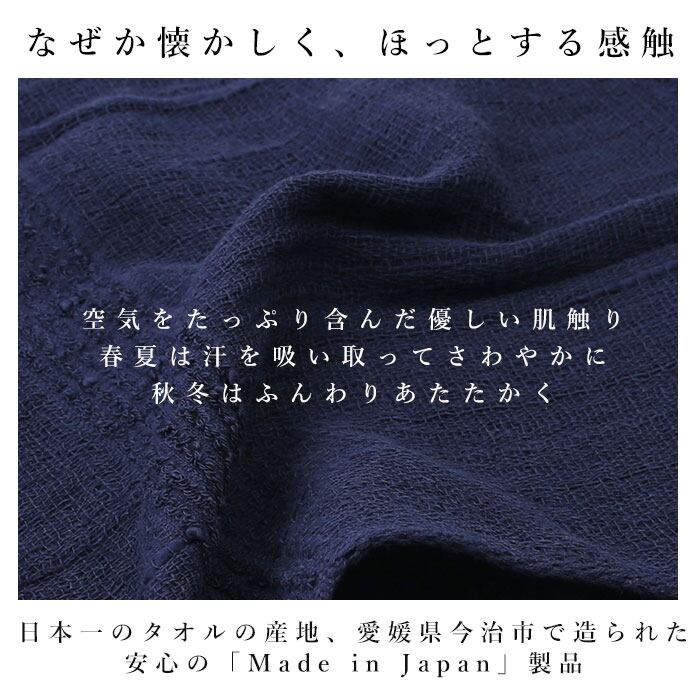 ・マフラーの生地は、保湿性や通気性に優れたコットン100%素材。日本一のタオルの産地、愛媛県今治市で造られた安心の「Made in Japan」製品。