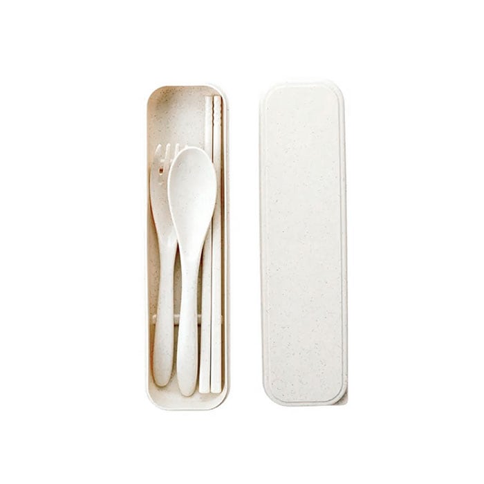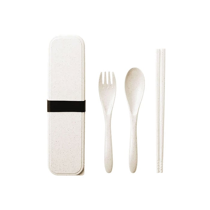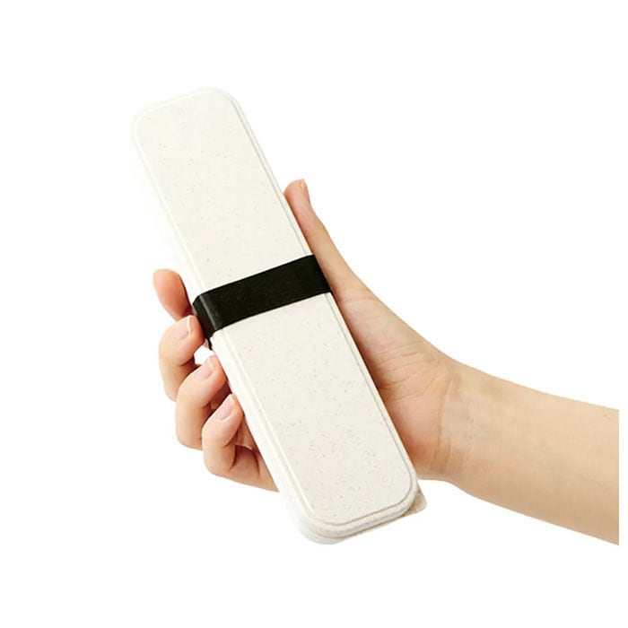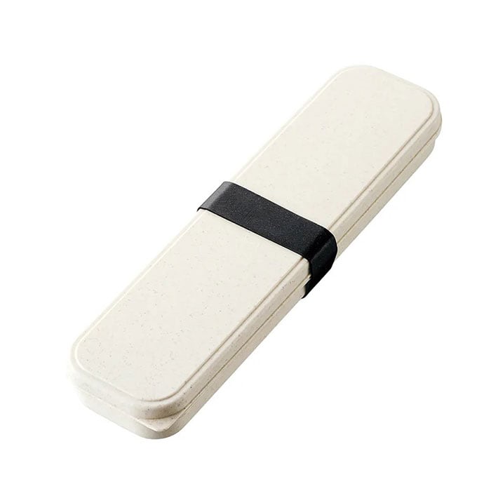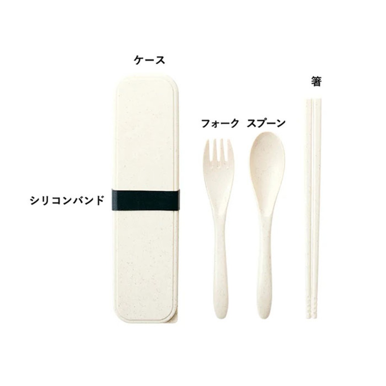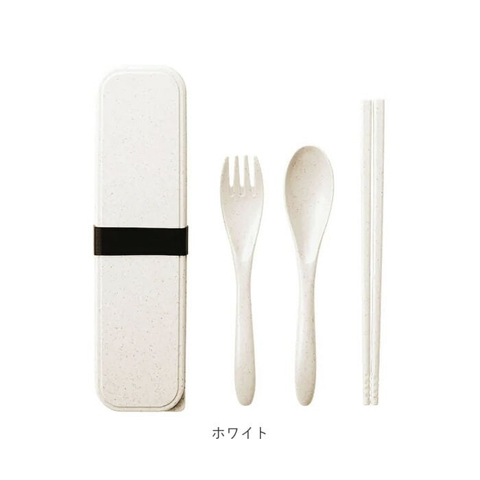 ・スプーン、フォーク、お箸のセット。ケースに入れて付属のシリコンバンドで留めればケースのフタが開く心配がなく、コンパクトに持ち運ぶことができる◎