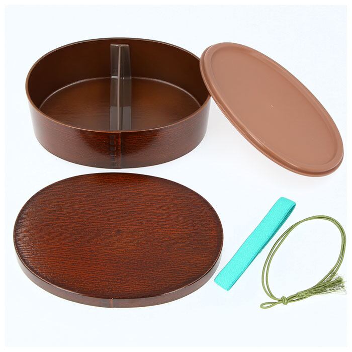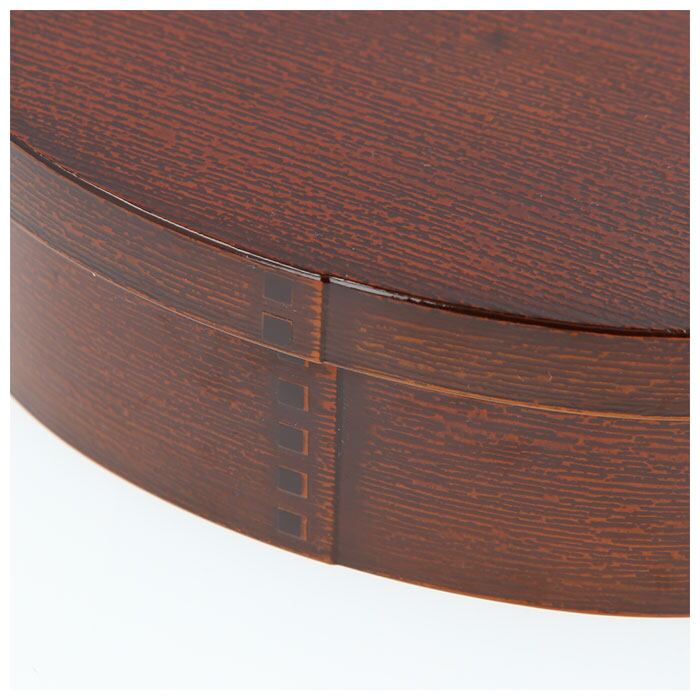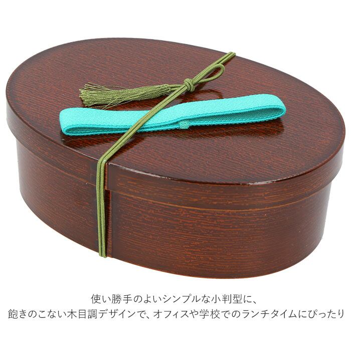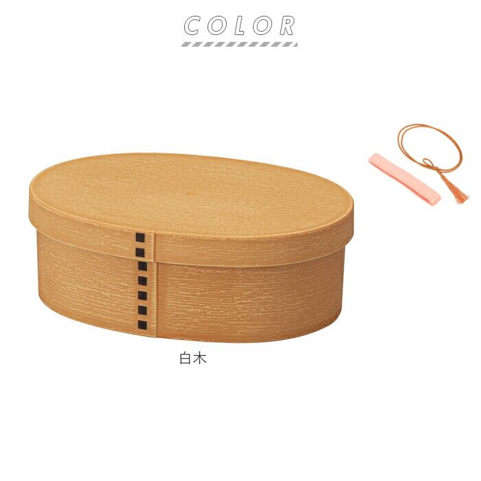 ・ナチュラルな木目調仕上げに気持ちが安らぐ、昔懐かしいまるで曲げわっぱのような小判型のお弁当箱。