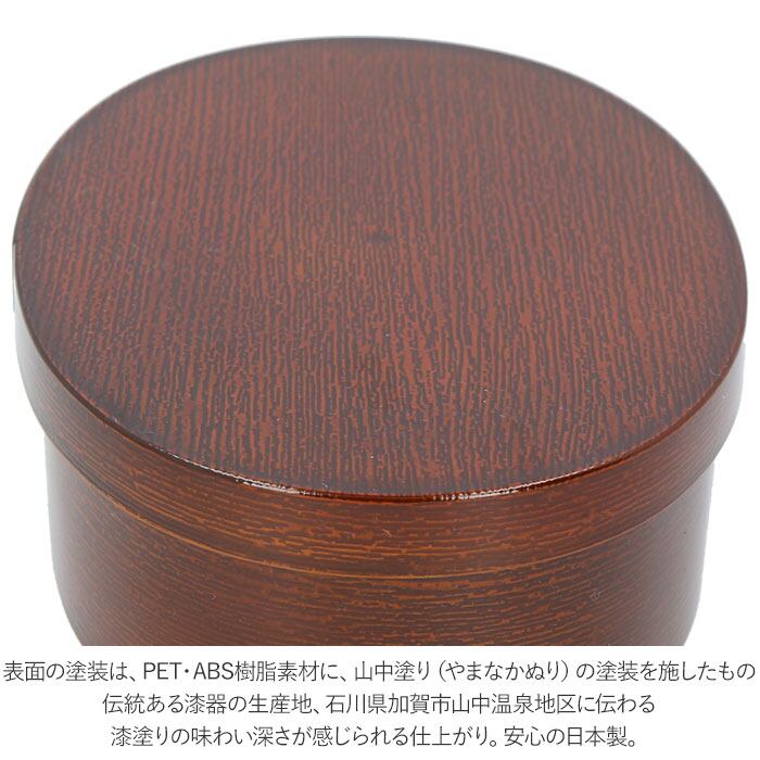 ・表面の塗装は、PET・ABS樹脂素材に、山中塗り(やまなかぬり)の塗装を施したもの。伝統ある漆器の生産地、石川県加賀市山中温泉地区に伝わる漆塗りの味わい深さが感じられる仕上がり。安心の日本製。