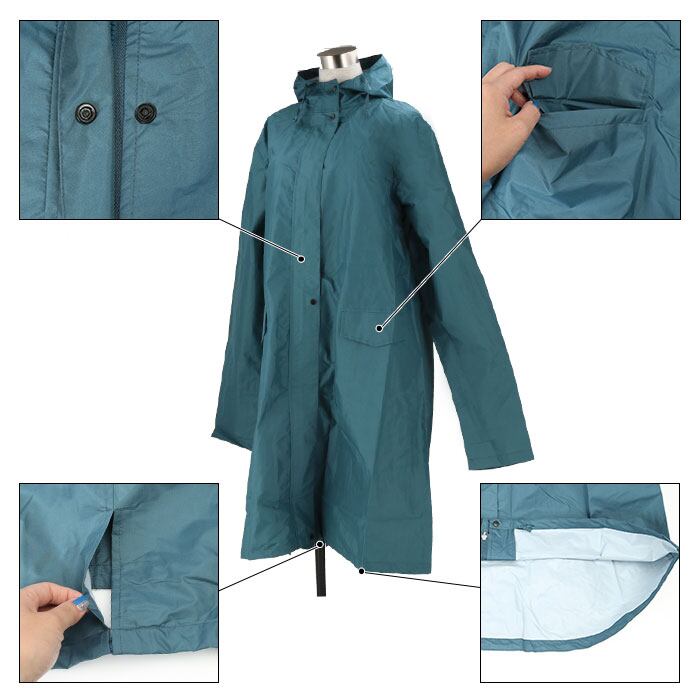 ・膝下までカバーする長めの着丈だから、リュックを背負ったまま上から着ても大丈夫♪レインブーツとのバランスもばっちり。