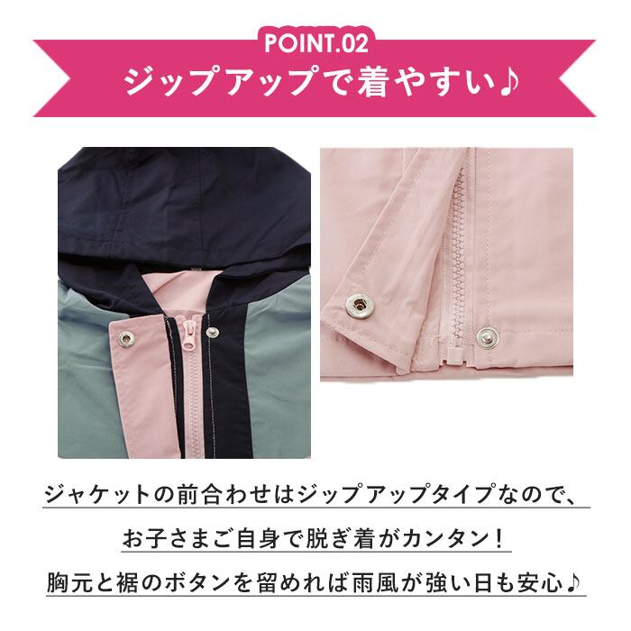 ・ジャケットの前合わせ部分はジップアップタイプなので、お子さまご自身で脱ぎ着がカンタン!