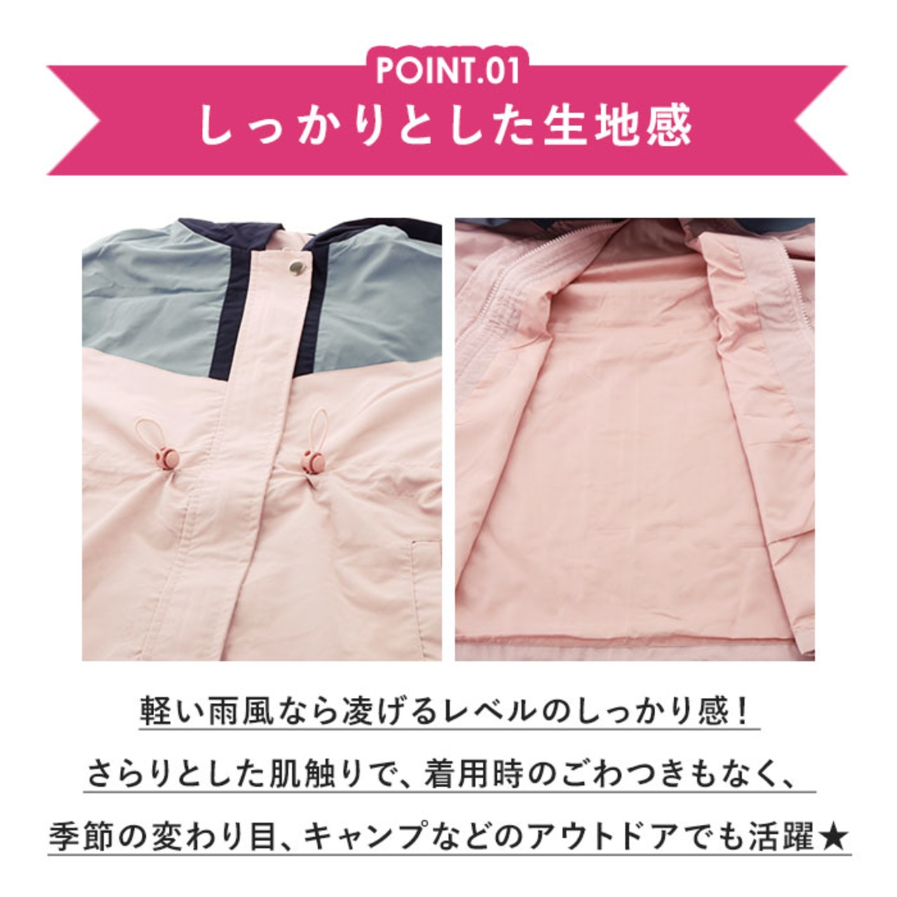 ・季節の変わり目に着る便利なアウターとしてはもちろん、ハイキングやキャンプなど、アウトドアでもスタイリッシュに着こなせる♪