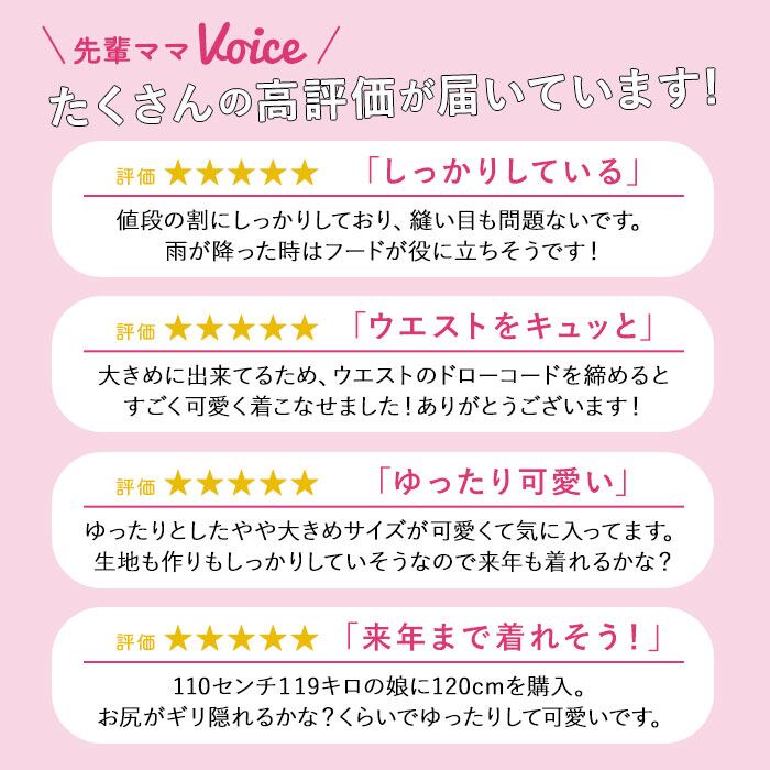 ・しっかりとした生地感で、春秋の肌寒い時期や梅雨寒の日もサッと羽織れる♪胸元と裾のボタンを留めれば雨風が強い日も安心。