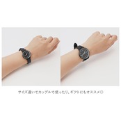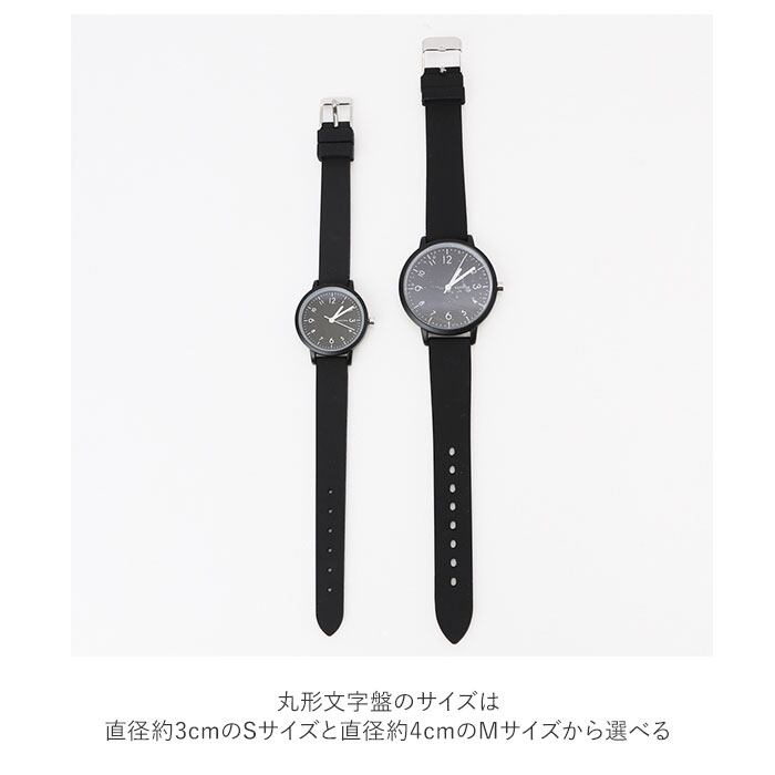 ・丸形文字盤のサイズは直径約3cmのSサイズと直径約4cmのMサイズから選べる。サイズ違いでカップルで使ったり、ギフトにもオススメ◎