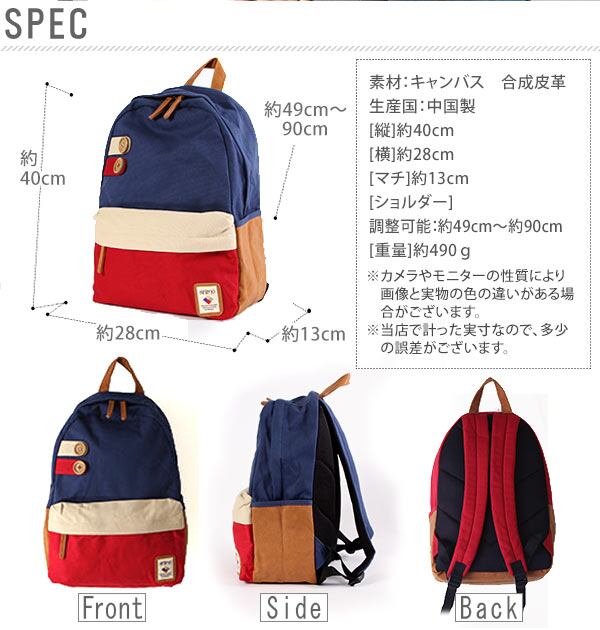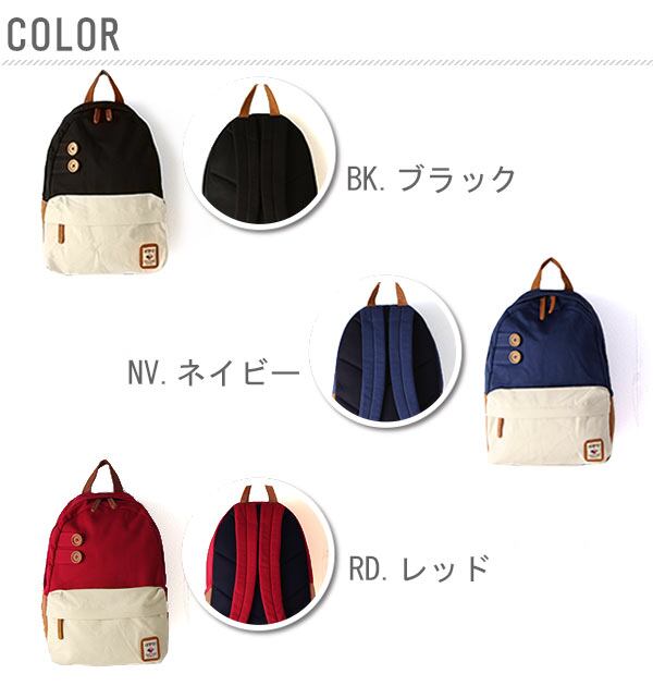 木製の大きなボタンが可愛い使い勝手の良いキャンバスデイパック♪厚手の帆布生地に合皮を合わせカジュアルでおしゃれな仕上がり◎大容量サイズでヘビロテ間違いなし★好きな色を見つけてね♪