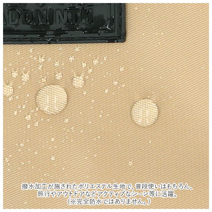 ・撥水加工が施されたポリエステル生地で、普段使いはもちろん、旅行やアウトドアなどアクティブなシーン等に活躍。(※完全防水ではありません。)