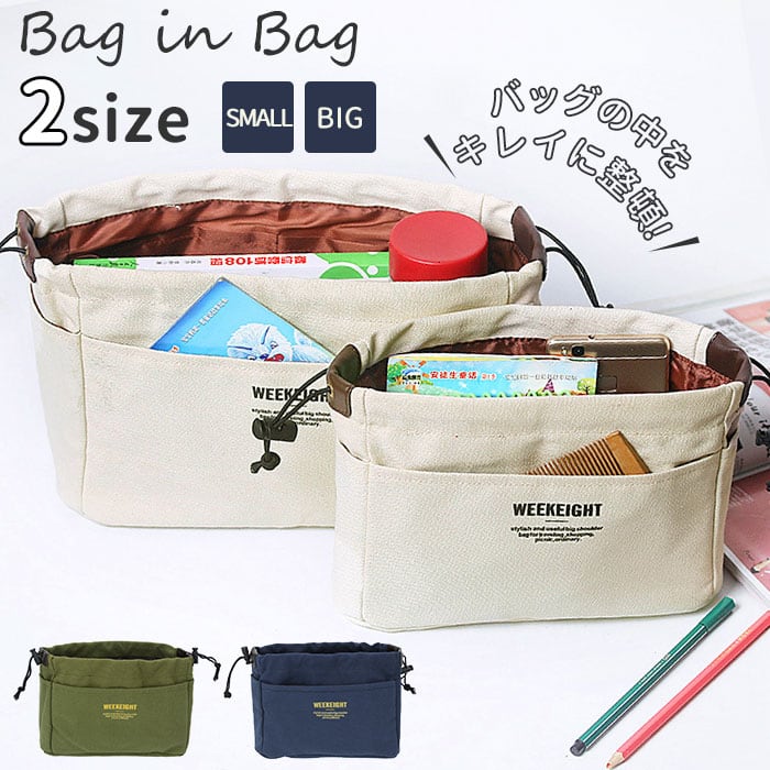 ・バッグの中をキレイに整頓、探しものをすぐに見つけられるバッグインバッグ。スモールサイズとビッグサイズの2展開。