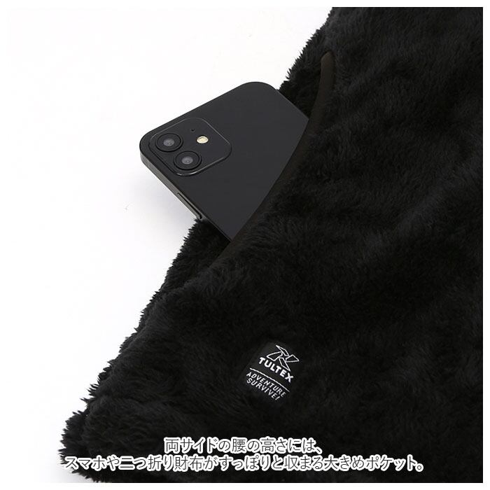 ・両サイドの腰の高さには、スマホや二つ折り財布がすっぽりと収まる大きめポケット。左胸には「TULTEX」のロゴが印象的なパスケースサイズのポケットを配置。