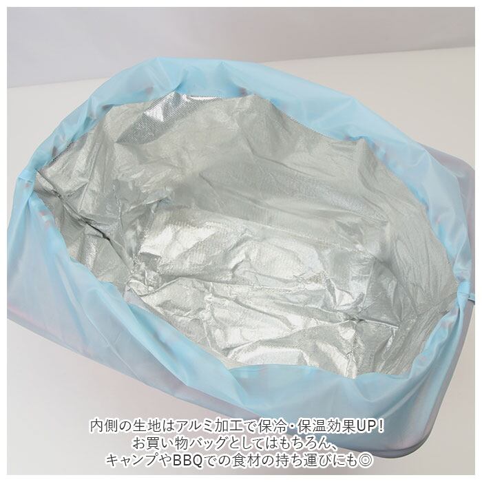 ・内側の生地はアルミ加工で保冷・保温効果UP!お買い物バッグとしてはもちろん、キャンプやBBQでの食材の持ち運びにも◎