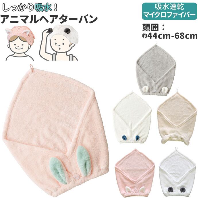 ・思わず笑顔になる、ふわふわ可愛い動物のお耳付き。お風呂上りに便利な、マイクロファイバー製の吸水アニマルヘアターバン。