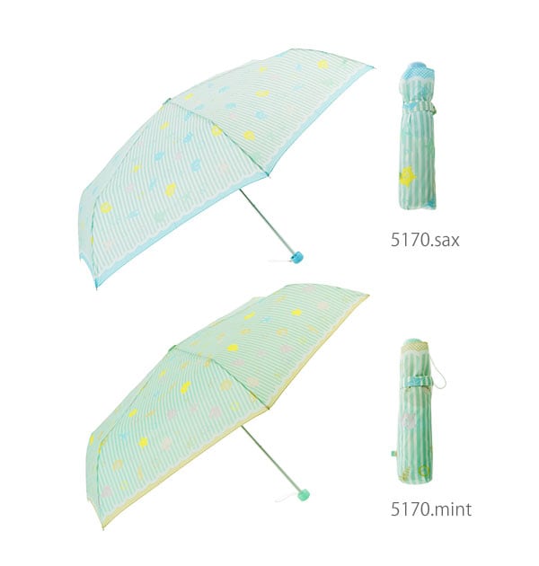 持ち運びに便利な軽量設計のキッズ折りたたみ傘です。親骨が55cmなので、ランドセルもしっかりカバーできる大きめサイズです。指をはさまない安全ろくろ付きなので、安心です。