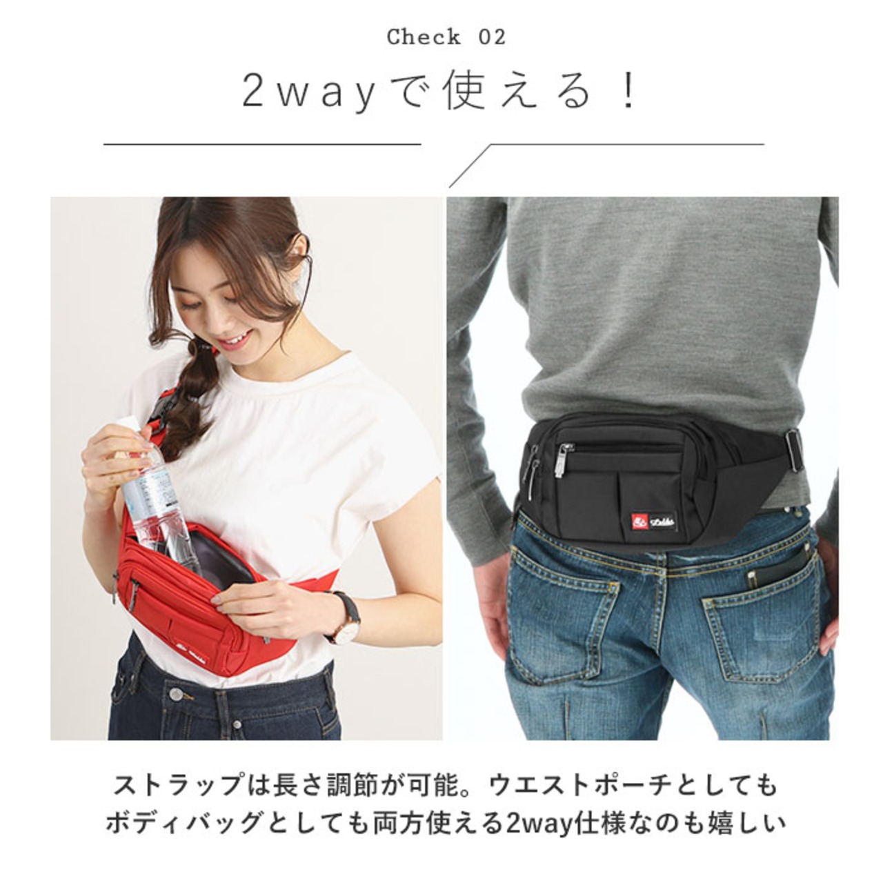 ・ストラップは長さ調節が可能。ウエストポーチとしてもボディバッグとしても両方使える2way仕様なのも嬉しい。