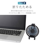 ・持ち手部分は折りたためるから、卓上のミニ扇風機としても使える☆