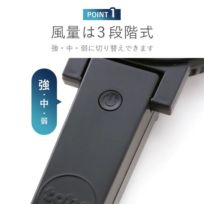 ・風量は3段階に調節可能。薄くて軽いからお出かけの時にバッグに入れておけば、さっと取り出せて便利♪