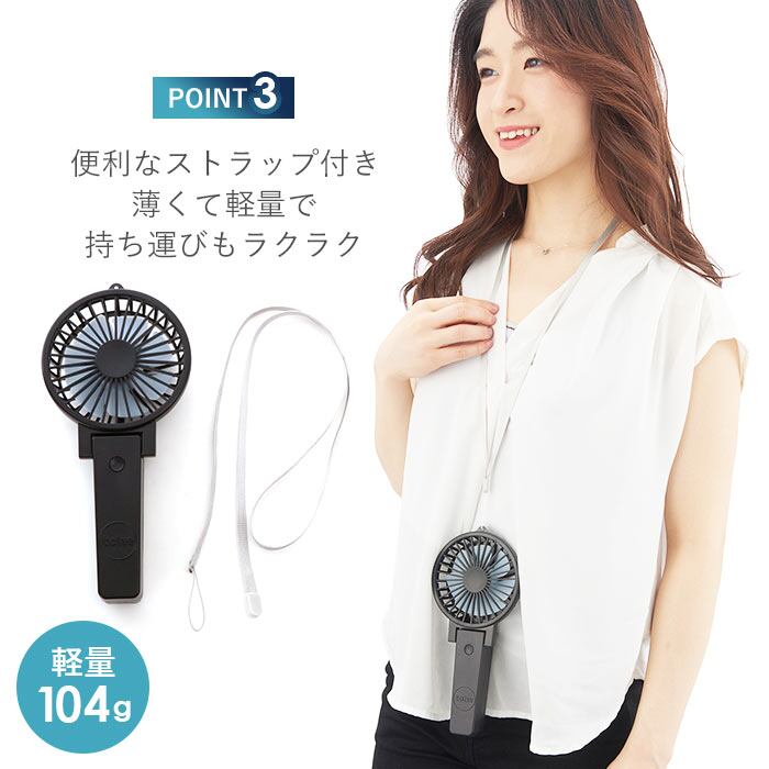 ・ネックストラップ付きで持ち運びラクラク♪乾電池で動くから、真夏の屋外でも大活躍!