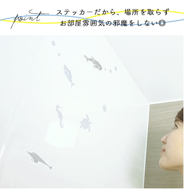 ※貼り付け場所の素材が、紙・繊維系壁紙、漆喰、木材面、障子、汚れ防止加工等を施した壁及び壁紙、石や土、金属などを主素材とした壁面、珪藻土壁紙、凹凸の激しい壁面、水のかかる場所にはご使用できません。