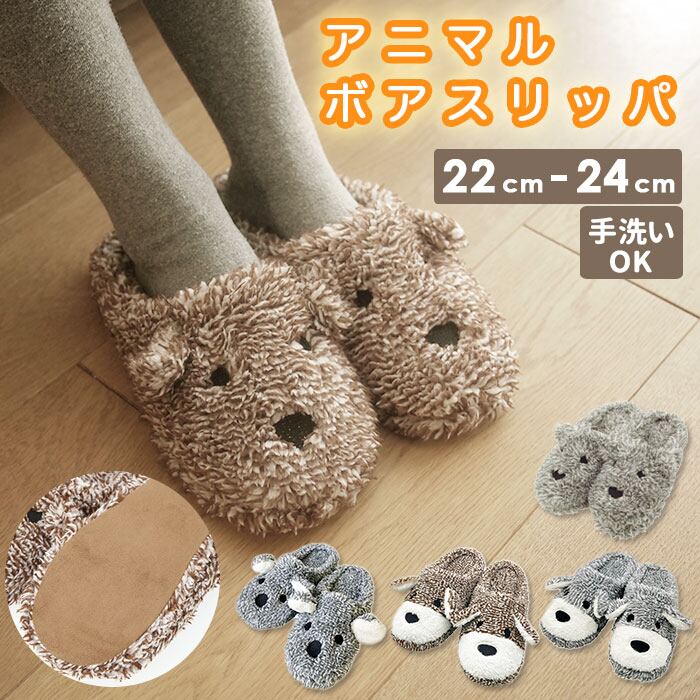・ふわふわっと優しい肌触り♪かわいいアニマルモチーフのボアスリッパ。