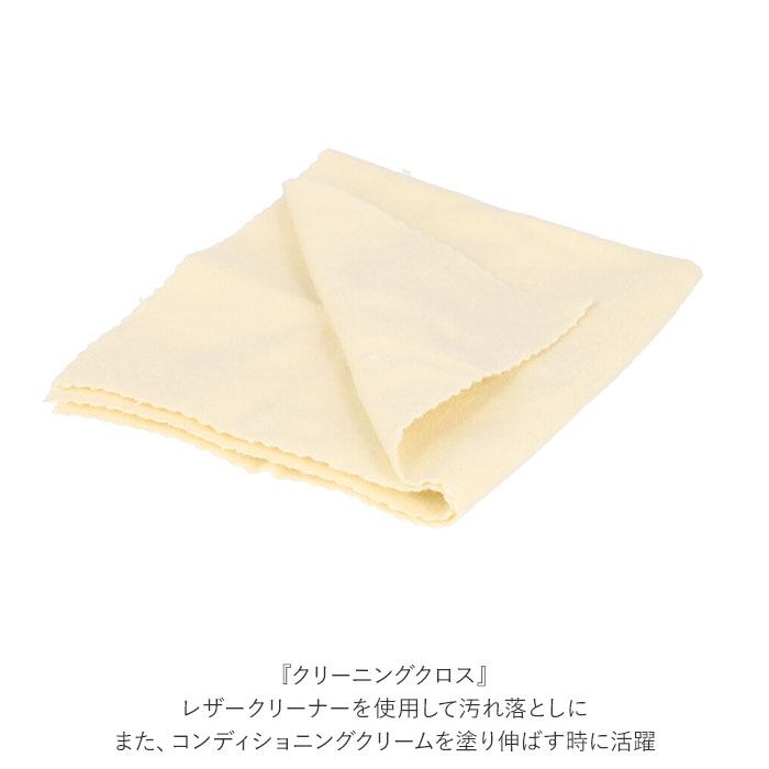 ・レザークリーナーを使用して汚れ落としに。また、コンディショニングクリームを塗り伸ばす時に活躍するクリーニングクロス。