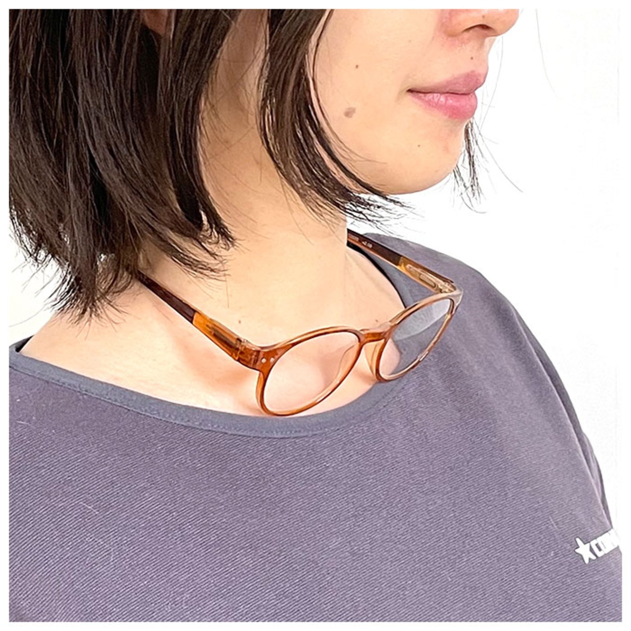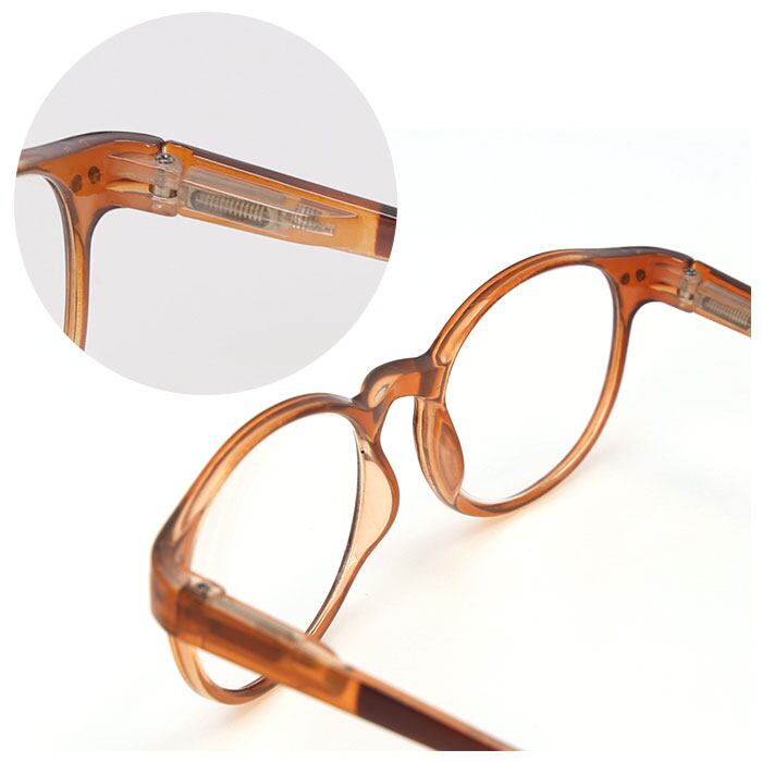 ・テンプル部分は肌に優しい素材を使用しており、金属アレルギーの方も安心。快適な着け心地を計算して設計されたバネ蝶番付き。